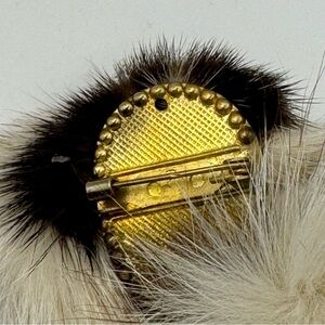 Vintage Art Deco Style Portrait Painted PorcelainLady Face Mink Fur Brooch Pin