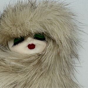 This Vintage Art Deco Portrait Painted Porcelain Lady Face Mink Fur Brooch Pin is a unique and elegant accessory that captures the essence of the Art Deco era. The asymmetrical shape and multicolor palette give it a striking and retro look, perfect for adding a touch of vintage charm to any outfit. Measuring 4 inches in length, this brooch features a beautifully painted porcelain face and a luxurious mink fur trim, making it a standout piece for those who appreciate beauty, theater, and fashion from the 1920s and 1930s.