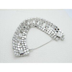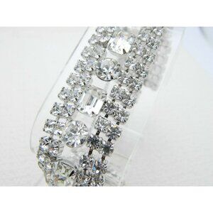 Vintage Art Deco Style Rhodium Silver Tone Clear CZ Rhinestone Wide Bracelet (D)