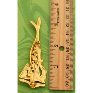 Vintage Art Deco Stylish Figure Rhinestones Gold Tone Brooch - W1