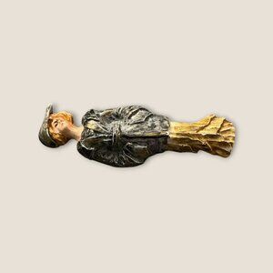 This vintage Art Deco brooch captures the elegance of the early 20th century with a stylish woman figurine. The gold and black tones add a touch of sophistication, making it a distinguished accessory that stands out with its unique design.