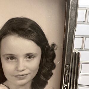 This Art Deco frame has some wear and tear due to its age so please take note of all photos. When you're looking at it straight on - the bottom left corner hangs a tiny bit lower than the right. It's not super noticeable. I tried to take pictures showing that.
