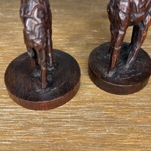 Vintage Art Deco Wooden Giraffe 6” Candle Holder Hand Carved Dark Wood Set of 2