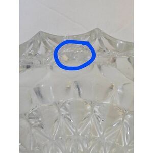 Clear glass, 7 " across with a 5 " opening. Has a chip in one area. Please see the pictures. Open to reasonable offers.