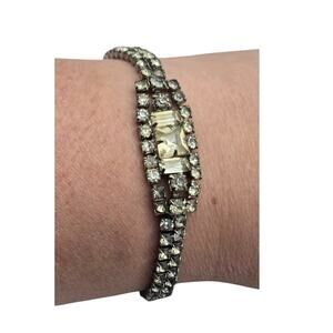 Vintage Art Deco-Style Rhinestone Bracelet – Clear Stones – 6.5”