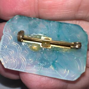 Vintage Art Deco Styling Carved Jadeite Brooch
