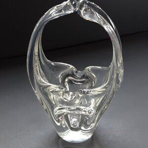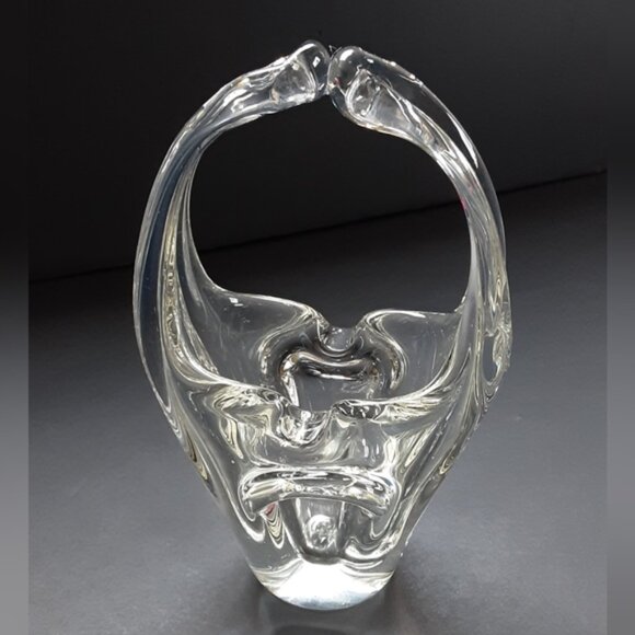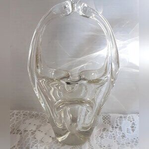 Vintage Art Glass Basket Clear 8inch tall Mid-century Modern Decor
