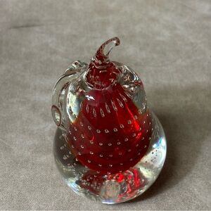 Vintage Art Glass Burgundy Paperweight with Controlled Bubbles
