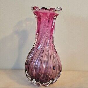 Vintage Art Glass Chech Vase By Josef Hospodka Sklo Pink Mid Century Modern