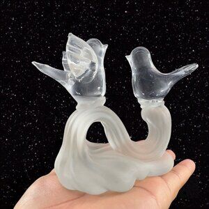 Vintage Art Glass Clear Love Bird Sculpture Figurine A Frosted Tree Branch Glass
