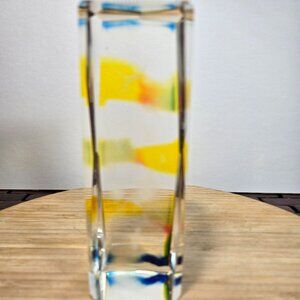 Delve into the exquisite detail with this Vintage Art Glass Etched Hummingbird Rectangle Paperweight. Its clear glass material provides a stunning backdrop for the delicate etchings of birds and flowers, bringing a touch of nature's grace to any desktop. The unmarked brand adds an air of mystery to this piece, making it a unique addition to your collection or as a thoughtful gift for someone who appreciates the intricacy of art glass. With its functional purpose as a paperweight and its charming design, it's not just a keeper of papers but also a piece of art that celebrates the beauty of birds in full bloom. There is a slight scratch on the top. Beautiful rainbow colors difficult to photograph.