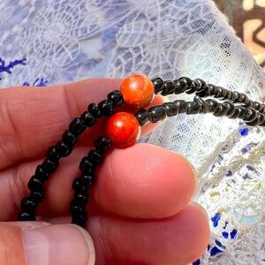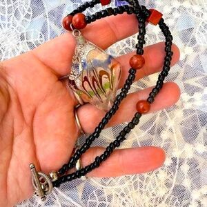 Vintage Art Glass & Genuine Red Jasper Stone Seed Bead Choker Necklace