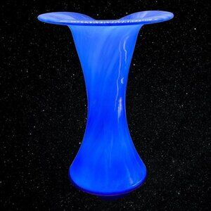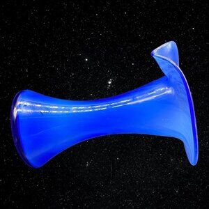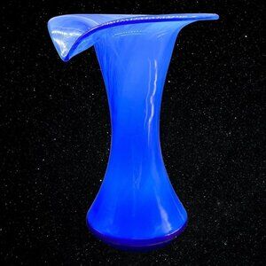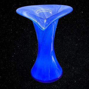 Vintage Art Glass Jack In The Pulpit Blue Swirl Vase Hand Blown 9”T 7”W.