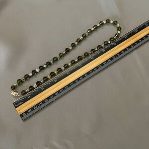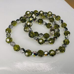 Vintage Art Glass Necklace Crystal Olive Green Clear AB Sterling Silver 4722
