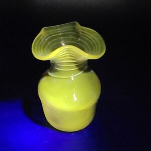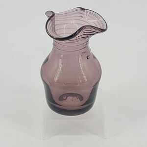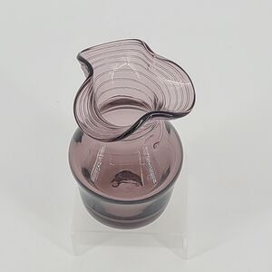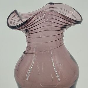 Vintage Art Glass Purple Bud Vase Ruffled Edge Applied Swirl