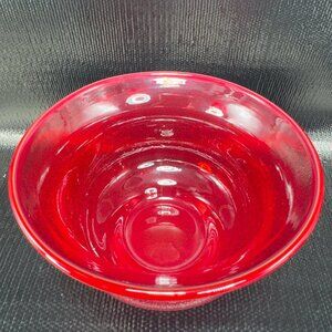 Vintage Art Glass Red Dish Bowl With White Textured Air Bubbles On Bottom Bowl