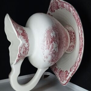 Vintage Art Mark Arco Red Japan Pastoral Scene Mini Pitcher And Plate