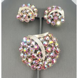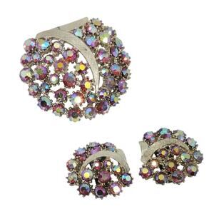Vintage Art Arthur Pepper Aurora Borealis Brooch and Clip On Earrings Set