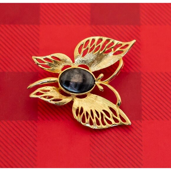 Vintage Art Nouveau Butterfly Stone Gold Tone Brooch by LC - O15