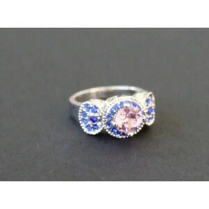 Vintage Art Nouveau Gaudy Victorian Cocktail Blue Pink Gemstone Ring Sz 8