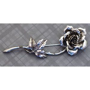 Vintage Art Nouveau Romantic Silver Tone Rose Brooch by Judy Lee