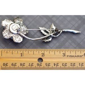 Vintage Art Nouveau Romantic Silver Tone Rose Brooch by Judy Lee - G47