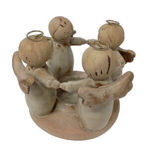 Vintage Art Pottery Ceramic Beige Angel Circle of Friends Candle Holder Figural