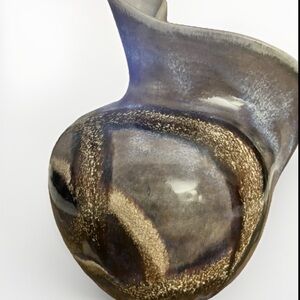 The Dudley Smith Preis Shell Vase is a stunning piece of studio art pottery from Hawaii, signed by the artist in 1996. This hand-molded ceramic vase features a glossy finish and a unique conch shell design, showcasing the beauty of sea life and the craftsmanship of the late 20th century. Measuring 9" in height and 6 1/4" in width, this decorative vase is a perfect addition to any home or collection, reflecting the originality and creativity of the artist's vision.