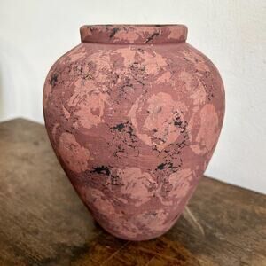 Unique artfully made mauve vase in a matte finish with abstract rose design throughout. The piece is in good vintage condition with a few minor scuffs consistent with age and use (pictured).
