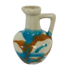 Bring charm to your home with this vintage ceramic pitcher vase featuring a bold abstract glaze in turquoise, burnt orange, and cream. Perfect for cottagecore shelf styling, rustic farmhouse décor, or mid century modern accents, this one-of-a-kind pottery piece makes a unique gift for collectors, home stylists, or vintage lovers. Use it year-round to add a cozy, artistic touch to any room.