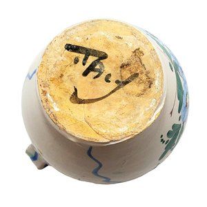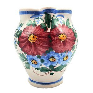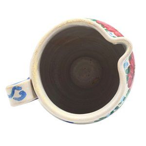 Vintage Art Pottery Small Floral Pitcher Italy Hand Painted Rustic Farmhouse Cou