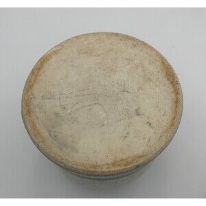 This vintage art pottery stoneware sugar jar with lid features a round shape and a multicolor design with white and blue straps. Handmade, it is an original piece of art pottery produced with a pottery technique. With dimensions of 10" in length and height, and 7" in width, this decorative cookware piece weighs 5lbs. Perfect for storing sugar or other kitchen essentials, this unique jar adds a touch of vintage charm to any kitchen or dining area.