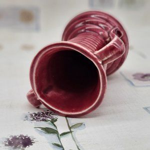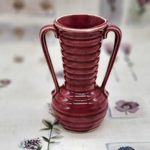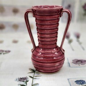 Vintage Art Pottery Vase USA Small Mulberry Ceramic Ribbed Two Handle