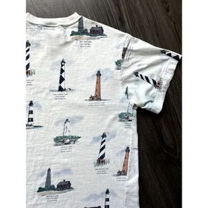 Vintage Art Unlimited North Carolina Lighthouse AOP Shirt M NC 90s Cape Fear