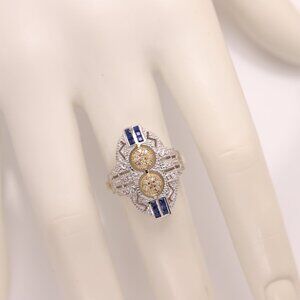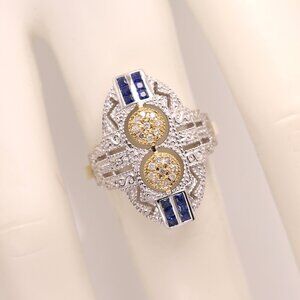 Vintage Art deco Ring Natural Blue Sapphire and Diamonds 18k and silver