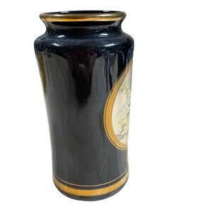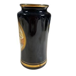 Vintage Art of Chokin Japanese Vase Black Procelain with Gold Trim GUC