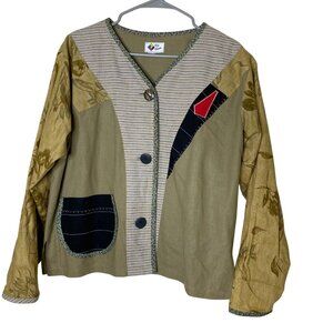 Vintage Art to Wear Jacket XL Patchwork Mixed Print Button Top Boho Eclectic