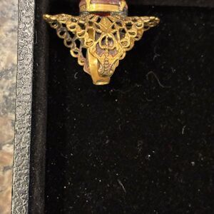 This exquisite gold filigree ring features a stunning pink stone, perfect for adding a touch of elegance to any outfit. Ideal for special occasions or everyday wear. I was told it is an antique ring. So antique or art deco. Adjustable. Beautiful filigree work. Stunning ring!