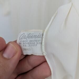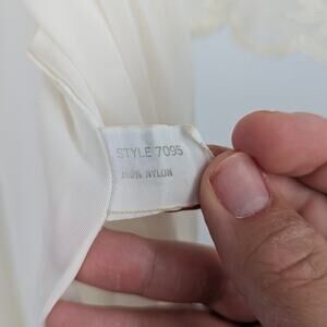 This beautiful vintage Artemis nightgown features delicate floral lace across the shoulders and sleeves, a scalloped Peter Pan collar, and a flowing sheer nylon body. The soft ivory tone and semi-transparent design give it a timeless romantic look. Button closure at the neckline adds a classic feminine touch. Size Small (see measurements below).