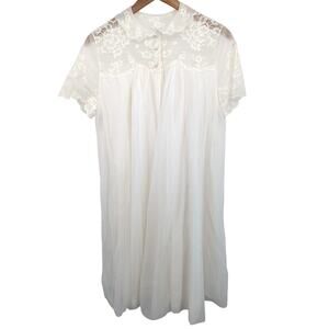 Vintage Artemis Lace Sheer Nylon Nightgown Ivory Short Sleeve Size Small