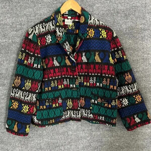 Vintage Artes Guatemattecas Jacket Womens Medium Cropped Hand Woven Wearable Art