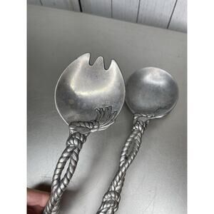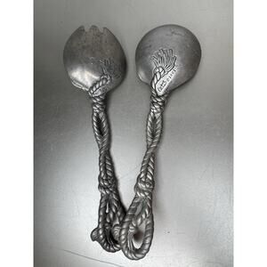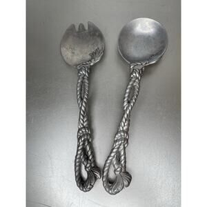 Vintage Arthur Court Pewter Nautical Rope Western Motif Salad Serving Set