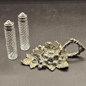 Vintage Arthur Court Silver Grape Salt & Pepper Set with Handle - Dining Decor
