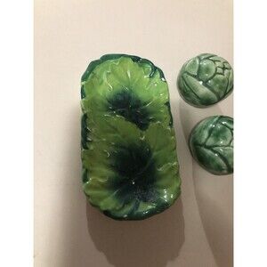 Vintage Artichoke Salt and Pepper Shakers with Tray Made in Japan missing bottom caps