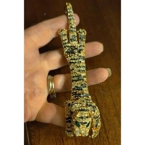 Vintage Articulated Tiger Cat Draping Shoulder Brooch Goldtone Black 6"