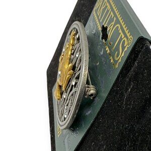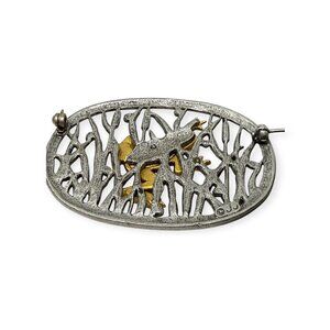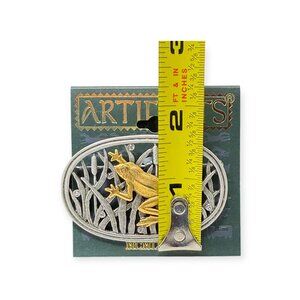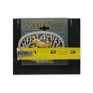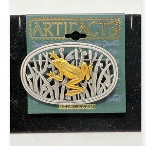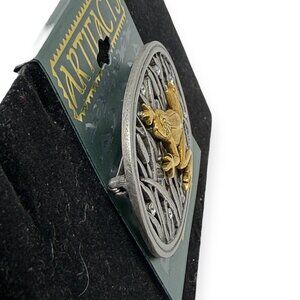 Vintage Artifacts Frog Brooch Pin Silver & Gold Tone Oval Design 3"x 2"