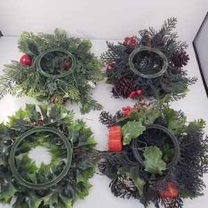 Vintage Artificial Plastic Floral Candle Rings Christmas Holiday Set 5