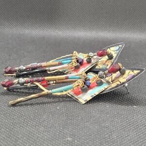 Vintage Artisan 80s Multi Color Iridescent Earrings Mixed Media Statement