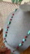 Vintage Artisan Aqua Howlite Stone & Red Glass Beads Necklace