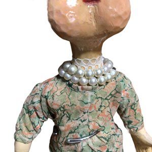 This Vintage Handcarved Wooden Grandma Artisan Doll is a charming and unique piece of multicolored, display art. She has a soft body and has been handpainted